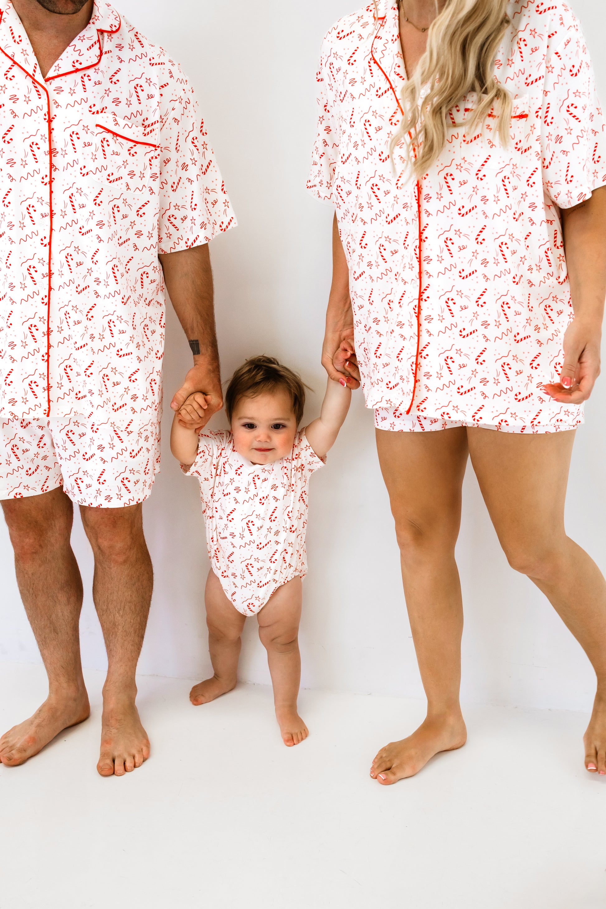 Make Christmas morning extra sweet in our Candy Cane Lane Kids PJ set! Featuring a playful red and white candy cane print. This matching set is crafted from our signature bamboo, cotton and spandex blend, oh-so soft and breathable on gentle little skin. This set pairs perfectly with our matching family Christmas Collection so everyone can celebrate in cheerful style!